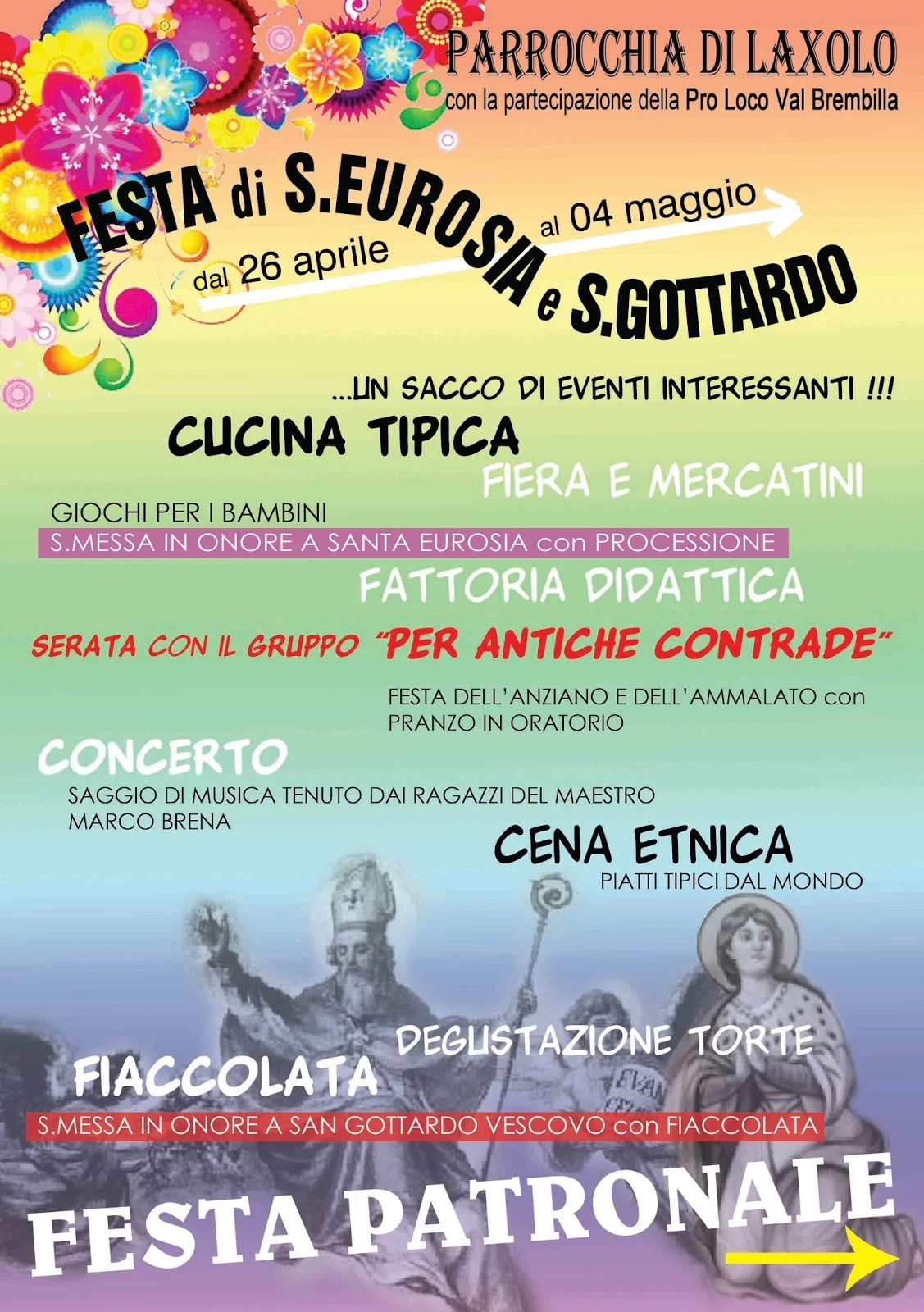17,00 S.MESSA IN ONORE A SANTA EUROSIA con PROCESSIONE 19,00 CUCINA TIPICA IN ORATORIO